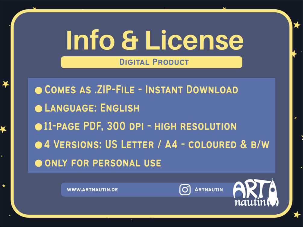 This is a digital product. You can print out the PDF or use it digitally. The document has been created for A4 and US Letter printing, but other sizes are also possible.